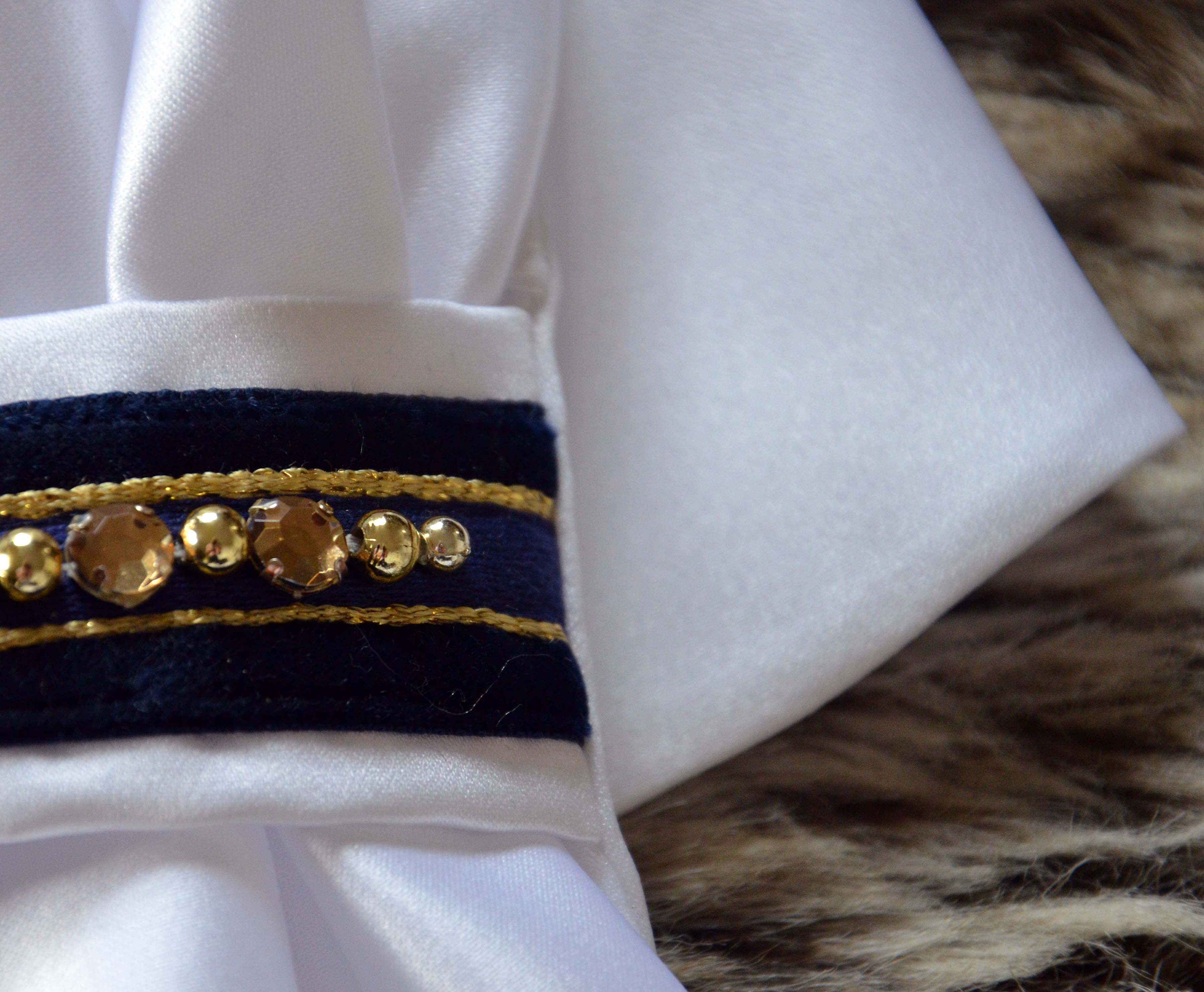 • Sapphire Blue with black vegan leather Teddy Brush Boots and Bell Boots