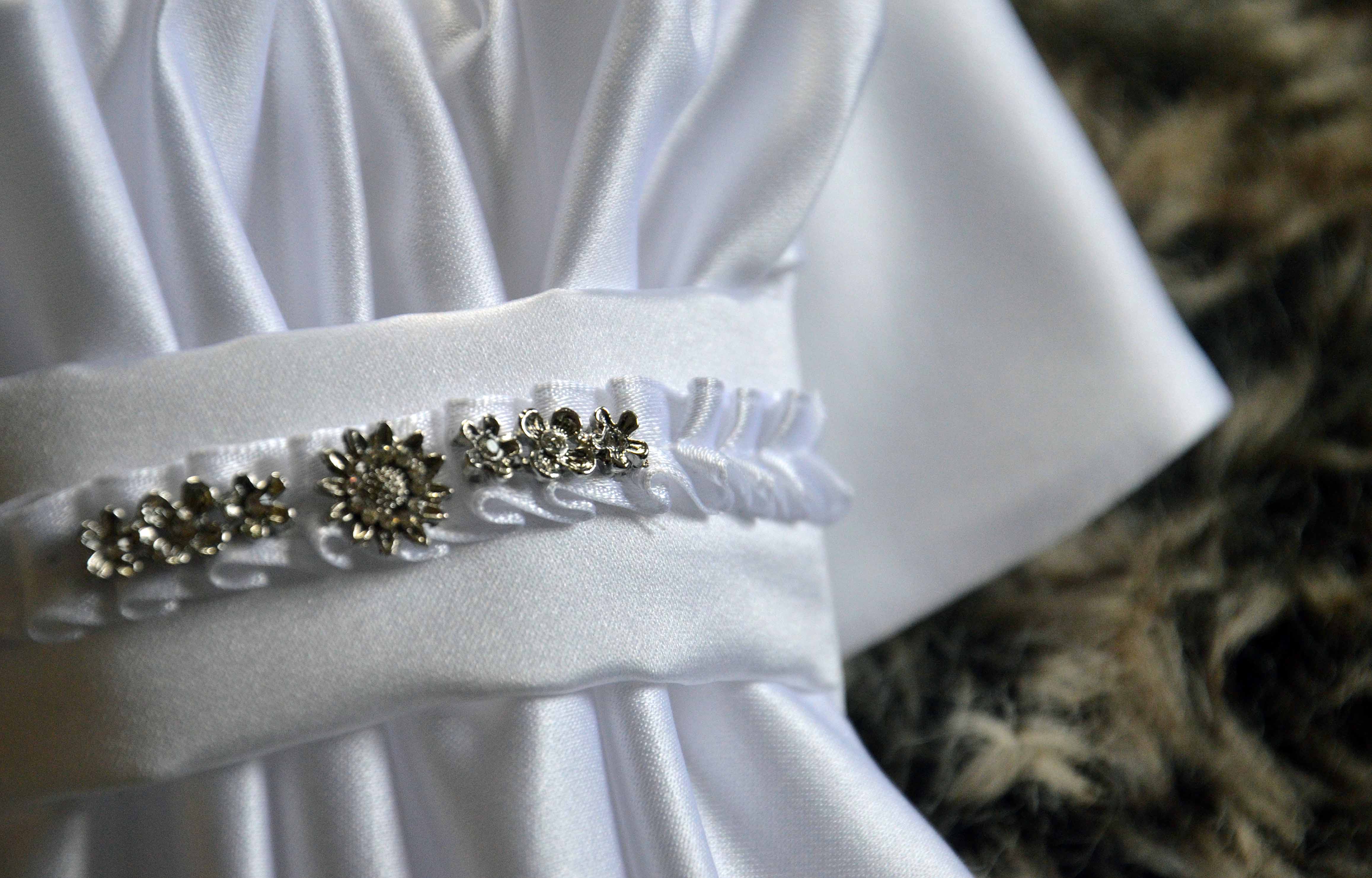 • White Matte with White Teddy with Silver sparkle straps Brush Boots and Bell Boots